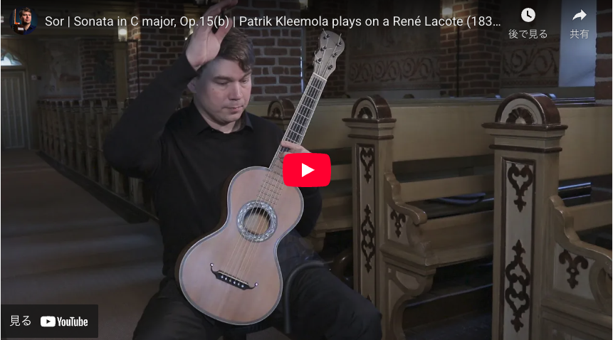 ギター動画を更新しました~P.クレーモラの演奏 by shigeki · 公開済み 2026年2月4日 · 更新済み 2026年1月31日 ブログ『ギター動画』を更新しました。 今日ご紹介するのは、パトリック・クレーモラの動画です。 ギター黄金期の巨匠フェルナンド・ソルが残した爽やかな『ソナタ』を、1839年製のラコートの優雅な響きで聴かせてくれています。 ゆっくりとお楽しみください。 ≫パトリック・クレーモラが弾くソルの『ソナタ Op15-2』 共有:投稿いいね:いいね 読み込み中…